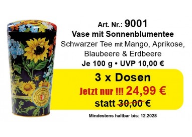 Schwarzer Ceylon Tee mit Mango-/Aprikosenstückchen, Sonnenblumen-/Lilien-/Malven-/Ringelblumenblätter; Blaubeer-/ und Erdbeer-Aroma.