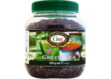 Purer grüner Tee, verpackt in einer Plastikdose.